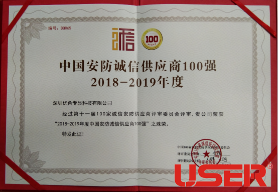 優(yōu)色專顯拼接屏榮獲第十一屆北京安博會(huì)100家誠信品牌安防供應(yīng)商