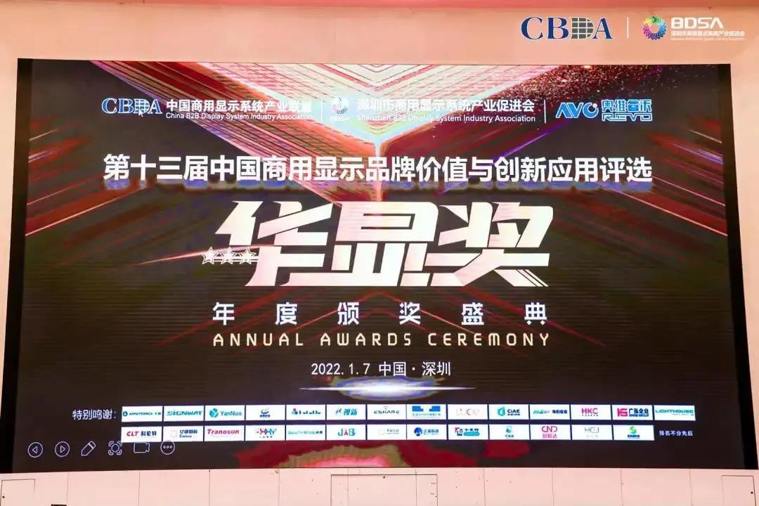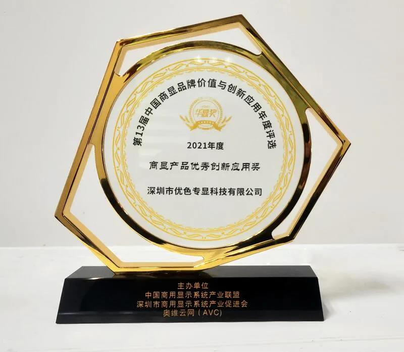 經(jīng)過(guò)數(shù)月的激烈角逐,數(shù)百家企業(yè)競(jìng)選,并通過(guò)企業(yè)自薦、專家評(píng)審等環(huán)節(jié),優(yōu)色專顯憑借技術(shù)創(chuàng)新能力和行業(yè)品牌影響力,在2021年第13屆中國(guó)商用顯示品牌價(jià)值與創(chuàng)新應(yīng)用年度評(píng)選中榮獲“2021年度商顯產(chǎn)品優(yōu)秀創(chuàng)新應(yīng)用獎(jiǎng)”-華顯獎(jiǎng)。