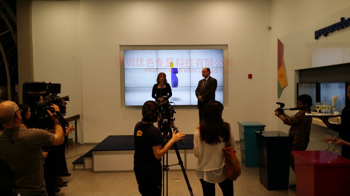 產(chǎn)品采用優(yōu)色液晶拼接大屏,2X2壁掛是安裝,5.3mm超窄邊拼縫。