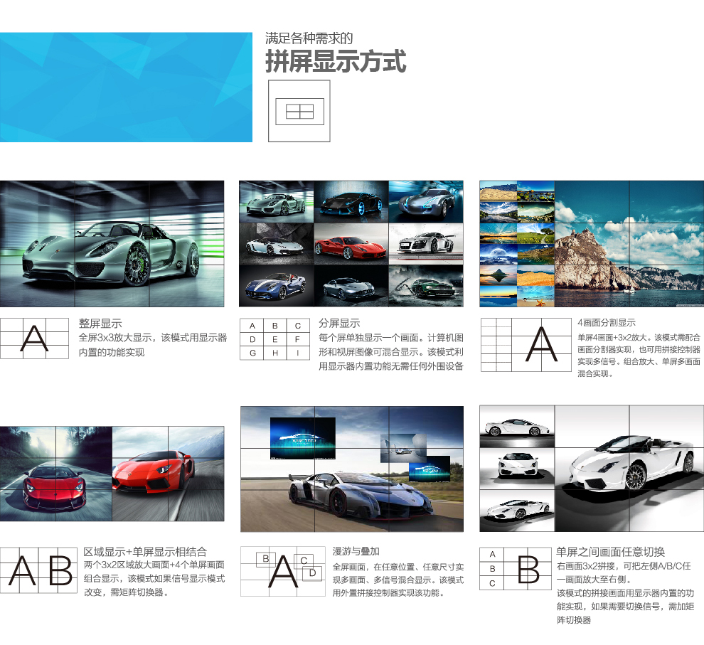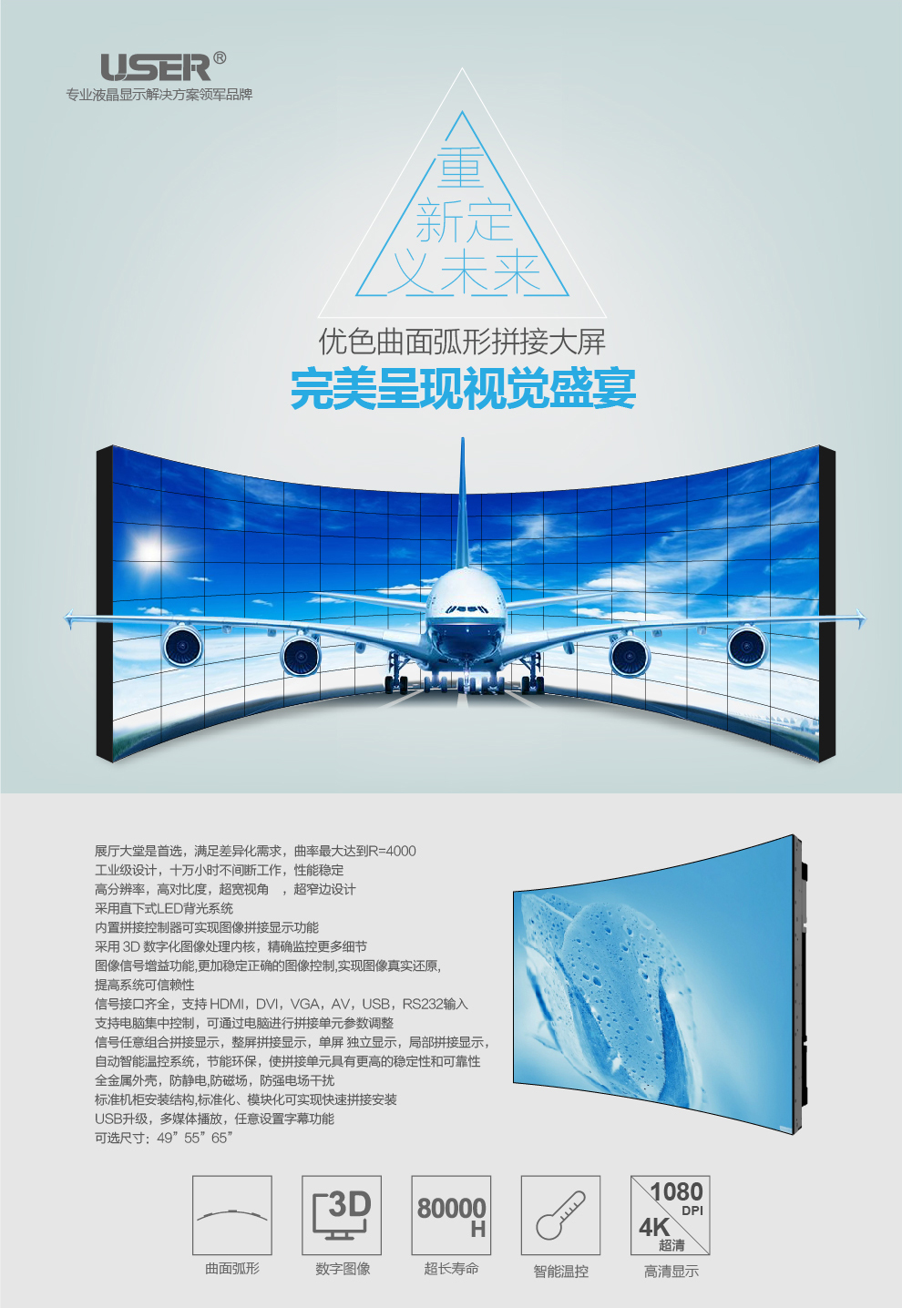 菜單產(chǎn)品中心Product center 液晶廣告機(jī) 壁掛式廣告機(jī) 落地立式廣告機(jī) 電梯超薄廣告機(jī) 車(chē)載廣告機(jī) 高亮廣告機(jī) 戶外廣告機(jī) 液晶拼接屏 專業(yè)液晶拼接屏 4K液晶拼接屏 廣告拼接屏 無(wú)縫液晶拼接屏 觸摸液晶拼接屏 LED顯示屏 觸控一體機(jī) 壁掛式觸控一體機(jī) 立式觸控一體機(jī) 斜面觸控一體機(jī) 智能家居觸控一體機(jī) 戶外觸控一體機(jī) 液晶電子白板 教育電子白板 會(huì)議電子白板 工控一體機(jī) 觸摸顯示器 紅外觸摸顯示器 電容觸摸顯示器 電阻觸摸顯示器 聲波觸摸顯示器 納米觸摸顯示器 液晶監(jiān)視器 專業(yè)級(jí)監(jiān)視器 4K監(jiān)視器 嵌入式監(jiān)視器 機(jī)架式監(jiān)視器 開(kāi)放式監(jiān)視器 SDI監(jiān)視器 高亮監(jiān)視器 廣播級(jí)監(jiān)視器 工業(yè)顯示器 4K顯示器 機(jī)架式顯示器 開(kāi)放式顯示器 醫(yī)療顯示器 KVM顯示器 指揮室顯示器 智慧校園產(chǎn)品 專業(yè)定制商顯 多屏廣告機(jī) 多功能觸控一體機(jī) 多功能廣告機(jī) 微信打印廣告機(jī) 魔鏡廣告機(jī) 透明廣告機(jī) 全息廣告機(jī) 條形屏廣告機(jī) 旋轉(zhuǎn)廣告機(jī) 裸眼3D廣告機(jī) 人工智能產(chǎn)品 顯示配套設(shè)備 拼接配套設(shè)備 廣告機(jī)播放盒 OPS播放盒 拼接支架 移動(dòng)支架 相關(guān)軟件 吊頂支架 線材 木架 蜂窩箱 桌面底座 熱門(mén)產(chǎn)品 →優(yōu)色3.5mm超窄邊46寸液晶拼接屏→優(yōu)色49寸3.5mm超窄邊液晶拼接屏→優(yōu)色3.5mm超窄邊55寸液晶拼接屏 您的位置:首頁(yè) → 公司產(chǎn)品 → 液晶拼接屏 → 廣告拼接屏 優(yōu)色弧形單元廣告液晶拼接屏類別:廣告拼接屏 簡(jiǎn)介: 在線咨詢 返回列表 產(chǎn)品說(shuō)明 相關(guān)產(chǎn)品 優(yōu)色弧形單元廣告液晶拼接屏 廣告液晶拼接屏