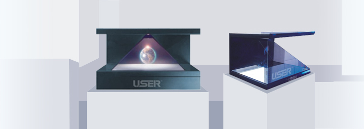 四個(gè)視頻發(fā)射器將光信號發(fā)射到這個(gè)錐體中的特殊棱鏡上,匯集到一起后形成具有真實(shí)維度空間的立體影像, 形成空中幻象中間可結(jié)合實(shí)物,實(shí)現(xiàn)影像與實(shí)物的結(jié)合