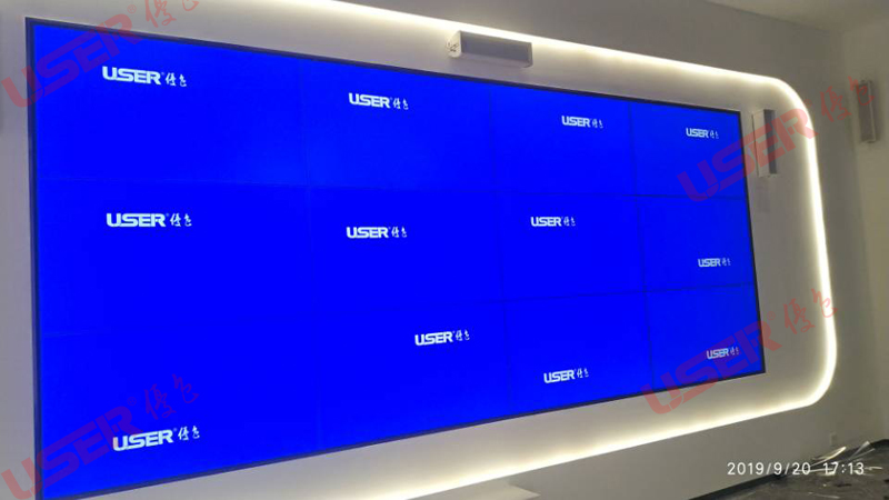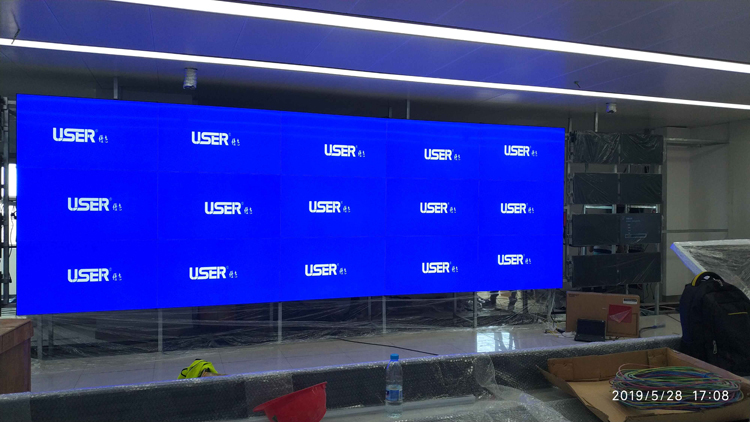 →唐山落地機(jī)柜55寸1.7mm液晶拼接屏竣工