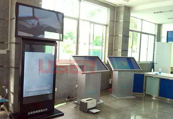 →海南省東方市工商局落地廣告機_雙屏廣告機_斜面觸摸一體機案例展示