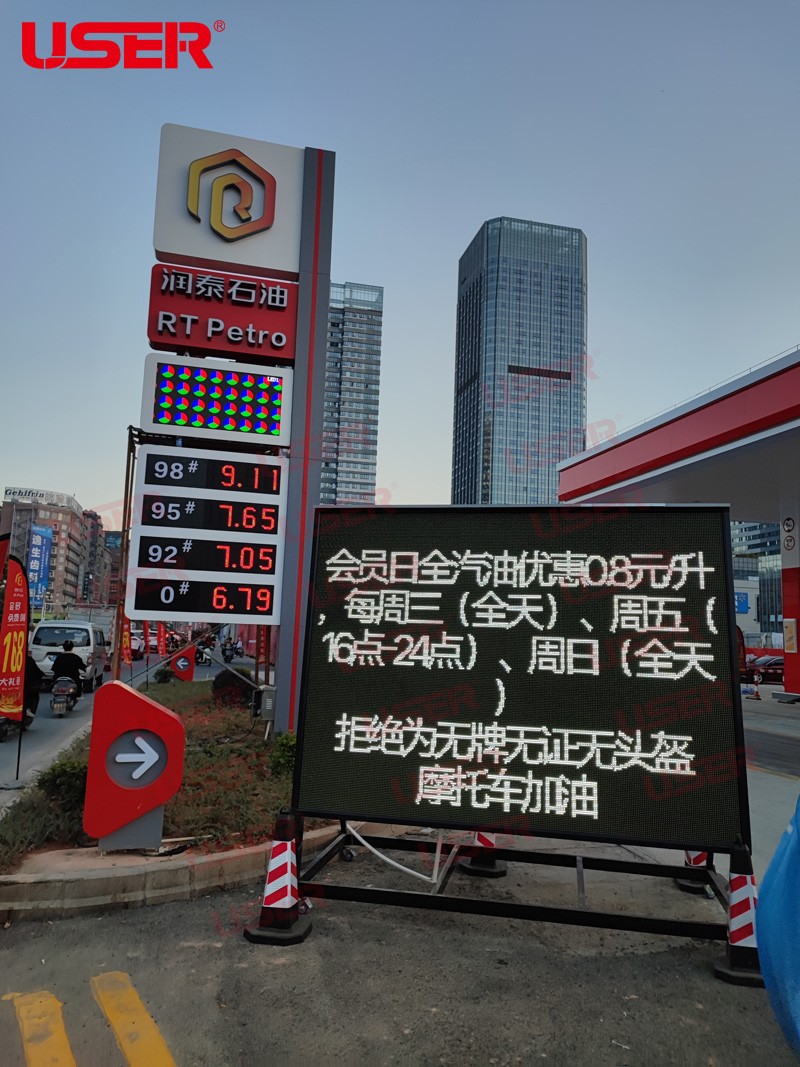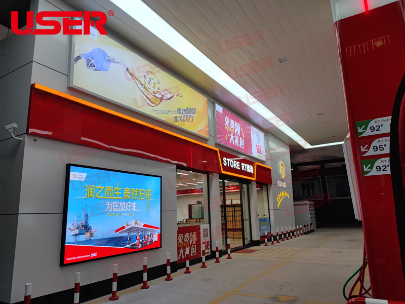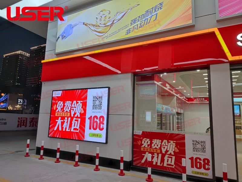 揭陽(yáng)市潤(rùn)泰加油站采用優(yōu)色專顯P2高刷全彩led顯示屏全套整體解決方案