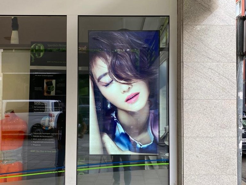 優(yōu)色立式廣告機(jī)和臥式觸摸一體機(jī)用于德國某公司展廳展示
