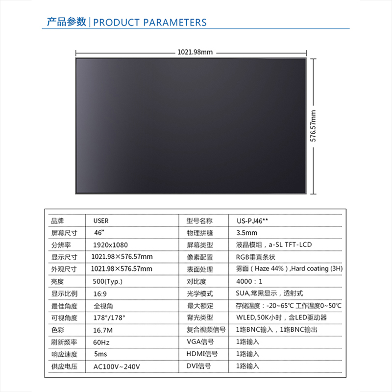菜單產(chǎn)品中心Product center 液晶廣告機 壁掛式廣告機 落地立式廣告機 電梯超薄廣告機 車載廣告機 高亮廣告機 戶外廣告機 液晶拼接屏 專業(yè)液晶拼接屏 4K液晶拼接屏 廣告拼接屏 無縫液晶拼接屏 觸摸液晶拼接屏 LED顯示屏 觸控一體機 壁掛式觸控一體機 立式觸控一體機 斜面觸控一體機 智能家居觸控一體機 戶外觸控一體機 液晶電子白板 教育電子白板 會議電子白板 工控一體機 觸摸顯示器 紅外觸摸顯示器 電容觸摸顯示器 電阻觸摸顯示器 聲波觸摸顯示器 納米觸摸顯示器 液晶監(jiān)視器 專業(yè)級監(jiān)視器 4K監(jiān)視器 嵌入式監(jiān)視器 機架式監(jiān)視器 開放式監(jiān)視器 SDI監(jiān)視器 高亮監(jiān)視器 廣播級監(jiān)視器 工業(yè)顯示器 4K顯示器 機架式顯示器 開放式顯示器 醫(yī)療顯示器 KVM顯示器 指揮室顯示器 智慧校園產(chǎn)品 專業(yè)定制商顯 多屏廣告機 多功能觸控一體機 多功能廣告機 微信打印廣告機 魔鏡廣告機 透明廣告機 全息廣告機 條形屏廣告機 旋轉廣告機 裸眼3D廣告機 人工智能產(chǎn)品 顯示配套設備 拼接配套設備 廣告機播放盒 OPS播放盒 拼接支架 移動支架 相關軟件 吊頂支架 線材 木架 蜂窩箱 桌面底座 熱門產(chǎn)品 →優(yōu)色3.5mm超窄邊46寸液晶拼接屏→優(yōu)色49寸3.5mm超窄邊液晶拼接屏→優(yōu)色3.5mm超窄邊55寸液晶拼接屏 您的位置:首頁 → 公司產(chǎn)品 → 液晶拼接屏 → 專業(yè)液晶拼接屏 優(yōu)色3.5mm超窄邊46寸液晶拼接屏類別:專業(yè)液晶拼接屏 簡介:◆ 型號:MG-PJ4601 ◆類型:三星/LG/京東方BOE面板 ◆亮度:500-700cd/m2(可選) ◆超窄邊設計,拼縫3.5mm ◆ 在ISO9001嚴格的質量控制體系下生產(chǎn)? ◆ 色彩均勻,圖像穩(wěn)定,為拼接大畫面定制... 在線咨詢 返回列表 產(chǎn)品說明 相關產(chǎn)品 優(yōu)色1.7mm超窄邊55寸液晶拼接屏 優(yōu)色49寸1.8mm超窄邊液晶拼接墻 優(yōu)色49寸3.5mm超窄邊液晶拼接屏 優(yōu)色3.5mm超窄邊55寸液晶拼接屏 優(yōu)色3.5mm超窄邊46寸液晶拼接屏 優(yōu)色5.3mm超窄邊55寸液晶拼接屏