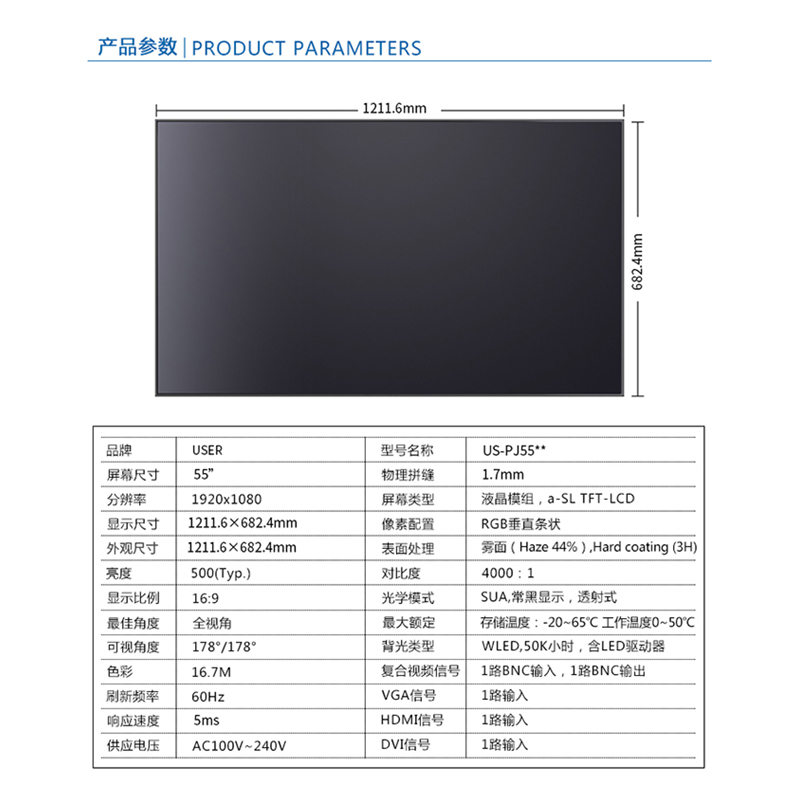 菜單產(chǎn)品中心Product center 液晶廣告機(jī) 壁掛式廣告機(jī) 落地立式廣告機(jī) 電梯超薄廣告機(jī) 車載廣告機(jī) 高亮廣告機(jī) 戶外廣告機(jī) 液晶拼接屏 專業(yè)液晶拼接屏 4K液晶拼接屏 廣告拼接屏 無縫液晶拼接屏 觸摸液晶拼接屏 LED顯示屏 觸控一體機(jī) 壁掛式觸控一體機(jī) 立式觸控一體機(jī) 斜面觸控一體機(jī) 智能家居觸控一體機(jī) 戶外觸控一體機(jī) 液晶電子白板 教育電子白板 會(huì)議電子白板 工控一體機(jī) 觸摸顯示器 紅外觸摸顯示器 電容觸摸顯示器 電阻觸摸顯示器 聲波觸摸顯示器 納米觸摸顯示器 液晶監(jiān)視器 專業(yè)級(jí)監(jiān)視器 4K監(jiān)視器 嵌入式監(jiān)視器 機(jī)架式監(jiān)視器 開放式監(jiān)視器 SDI監(jiān)視器 高亮監(jiān)視器 廣播級(jí)監(jiān)視器 工業(yè)顯示器 4K顯示器 機(jī)架式顯示器 開放式顯示器 醫(yī)療顯示器 KVM顯示器 指揮室顯示器 智慧校園產(chǎn)品 專業(yè)定制商顯 多屏廣告機(jī) 多功能觸控一體機(jī) 多功能廣告機(jī) 微信打印廣告機(jī) 魔鏡廣告機(jī) 透明廣告機(jī) 全息廣告機(jī) 條形屏廣告機(jī) 旋轉(zhuǎn)廣告機(jī) 裸眼3D廣告機(jī) 人工智能產(chǎn)品 顯示配套設(shè)備 拼接配套設(shè)備 廣告機(jī)播放盒 OPS播放盒 拼接支架 移動(dòng)支架 相關(guān)軟件 吊頂支架 線材 木架 蜂窩箱 桌面底座 熱門產(chǎn)品 →優(yōu)色3.5mm超窄邊46寸液晶拼接屏→優(yōu)色49寸3.5mm超窄邊液晶拼接屏→優(yōu)色3.5mm超窄邊55寸液晶拼接屏 您的位置:首頁 → 公司產(chǎn)品 → 液晶拼接屏 → 專業(yè)液晶拼接屏 優(yōu)色1.7mm超窄邊55寸液晶拼接屏類別:專業(yè)液晶拼接屏 簡(jiǎn)介:◆ 型號(hào):US-PJ55** ◆類型:三星/LG/京東方BOE面板 ◆亮度:500-700cd/m2(可選) ◆超窄邊設(shè)計(jì),拼縫1.7mm ◆ 在ISO9001嚴(yán)格的質(zhì)量控制體系下生產(chǎn)? ◆ 色彩均勻,圖像穩(wěn)定,為拼接大畫面定制... 在線咨詢 返回列表 產(chǎn)品說明 相關(guān)產(chǎn)品 優(yōu)色1.7mm超窄邊55寸液晶拼接屏 優(yōu)色49寸1.8mm超窄邊液晶拼接墻 優(yōu)色49寸3.5mm超窄邊液晶拼接屏 優(yōu)色3.5mm超窄邊55寸液晶拼接屏 優(yōu)色3.5mm超窄邊46寸液晶拼接屏 優(yōu)色5.3mm超窄邊55寸液晶拼接屏