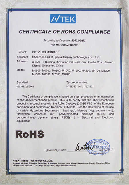 ROHS歐盟認(rèn)證(監(jiān)視器)
