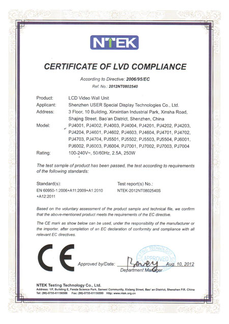 CE認(rèn)證歐盟認(rèn)證(液晶拼接LVD安規(guī)證書(shū))