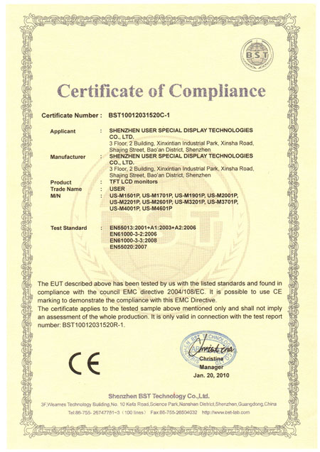 CE認(rèn)證歐盟認(rèn)證(液晶監(jiān)視器 EMC證書(shū))